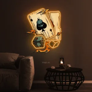 لوحة نيون أوراق اللعب والنرد