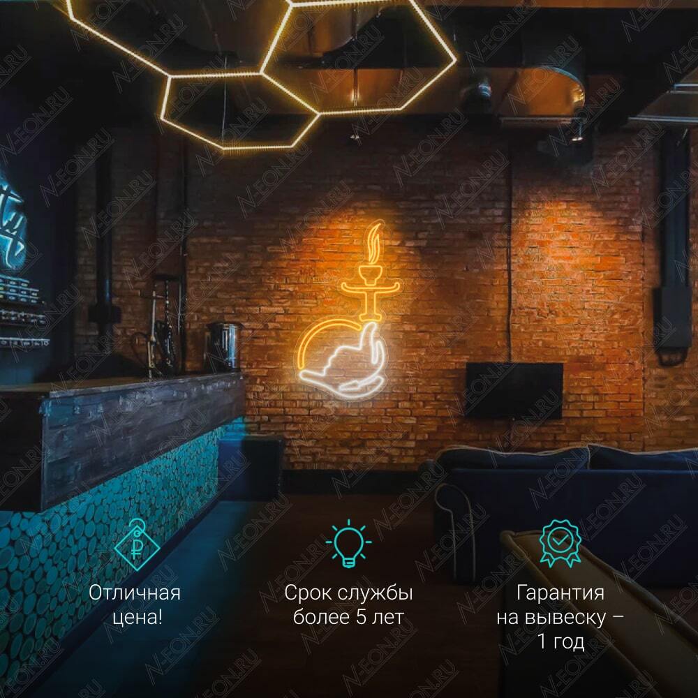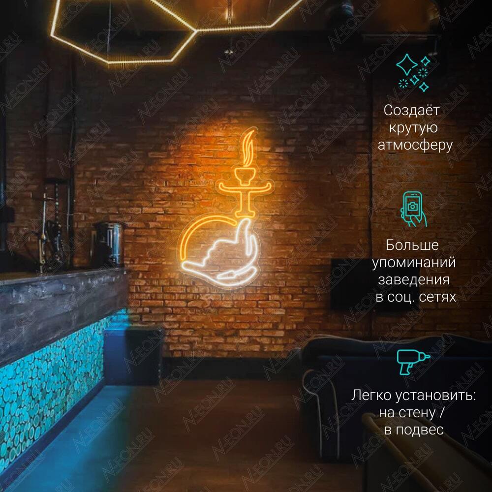 لافتة نيون حلوة ومميزة لأركيلة بار، بيها نيون LED مرن بلون برتقالي وأبيض بارد، لمن تحتاجها تكدر تثبتها عالحايط أو تعلقها.