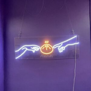 ضوء النيون الناعم والجذاب يسوي جو يحترم الثقافة، ويدعو الزباين حتى يجربون “البوزا” الأصلية.