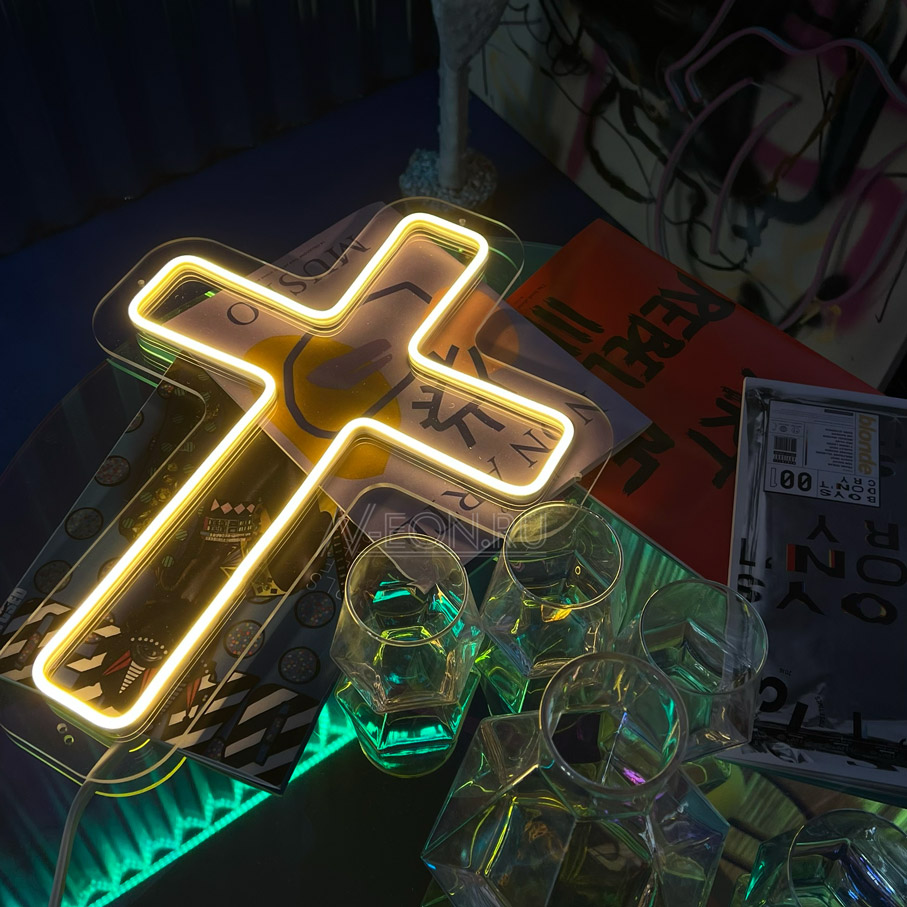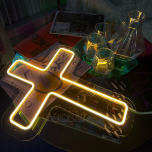 لافتة نيون ضوئها قوي، مصنوعة من نيون أبيض دافي، ممكن تختار الإضاءة اللي تفضلها للنيون، وهمين تكدر تثبت ديمر (مخفت إضاءة) حتى تتحكم بمستوى السطوع وبي أوضاع ومضات، ممكن تثبتها عالحايط أو تعلقها