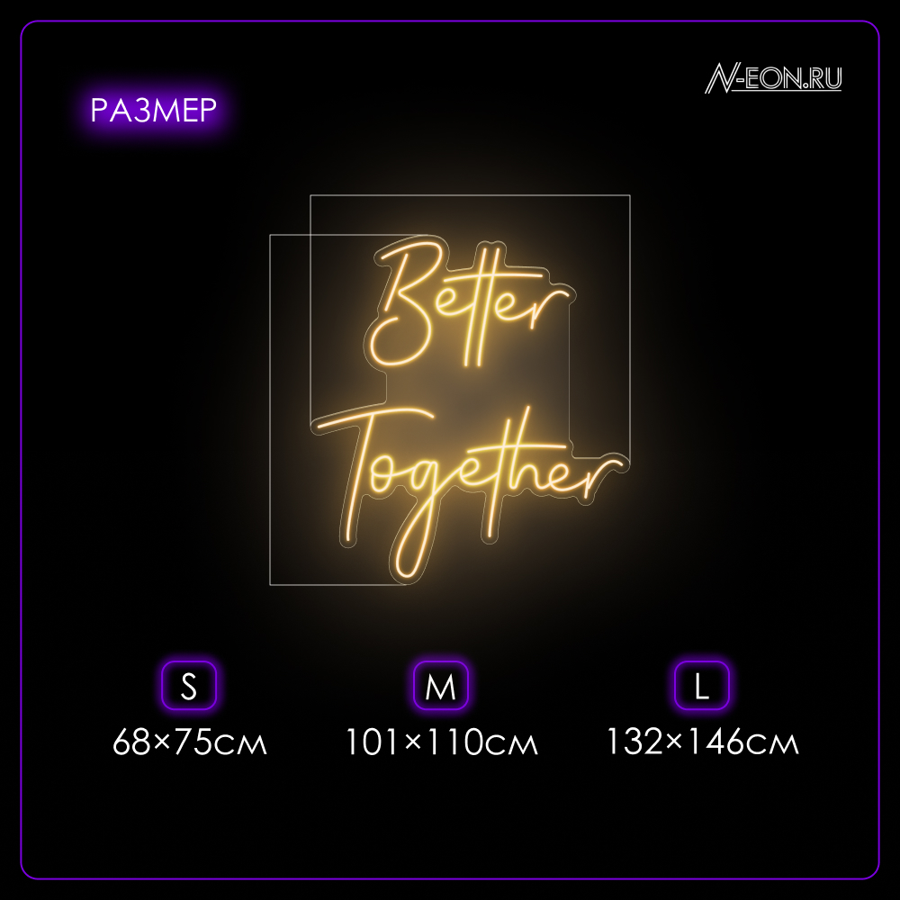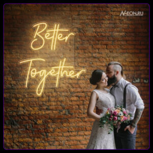 “Better Together” — هذا كتَب نيون متعدد الاستخدامات، يصير لمسة مميزة بالزواج، بمنطقة التصوير أو بديكور البيت. خطه الأنيق وإضاءته الهادية راح يخلقون جو دافئ ومريح.