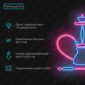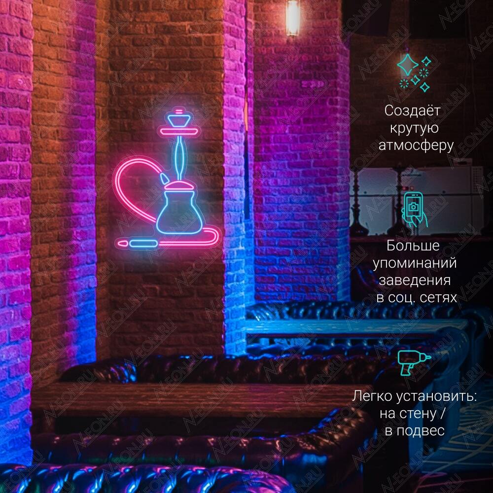 لافتة نيون جوّية لبار النركيلة، مصنوعة من نيون LED مرن أزرك ووردي، وإذا تحتاج تكدر تثبتها عالحايط أو تعلقها