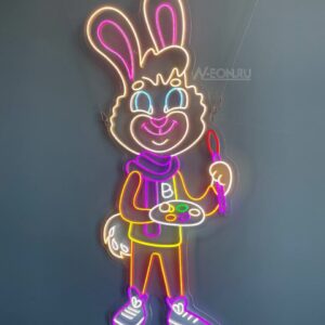 هذا الأرنب الحلو اللي يرسم بحماس أو لازم بايده لوحة ألوان، راح يصير رمز حلو للفن والإبداع.