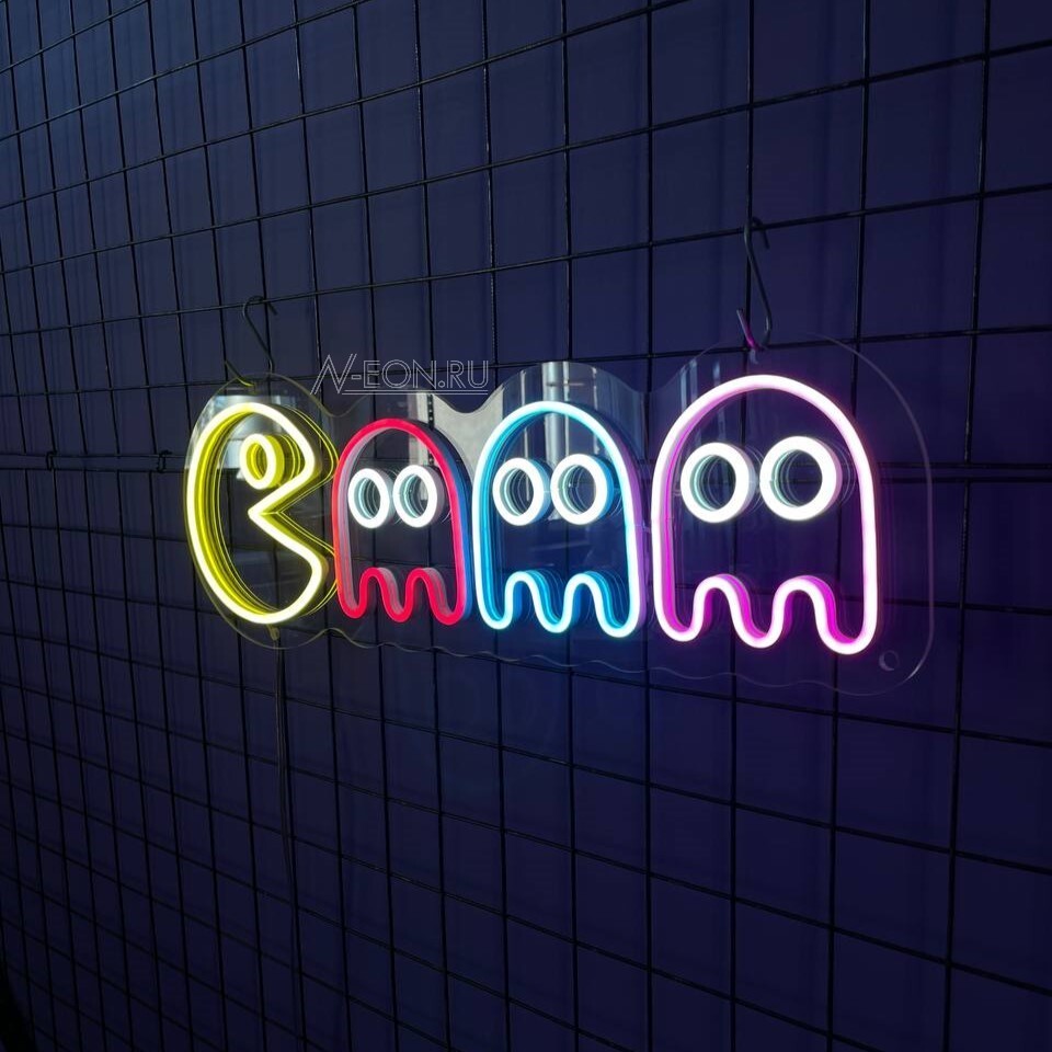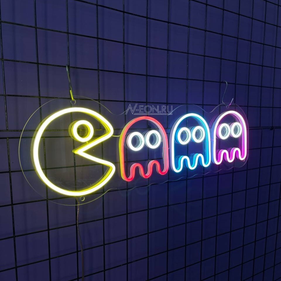 باكمان الأصفر المعروف، اللي يطارد الأشباح، مصنوع بضوء نيون ديناميكي، راح يكون زينة كلش حلوة لغرف الألعاب، وبارات على طراز الريترو، ومحلات ألعاب الفيديو، أو ببساطة للي يحبون الكلاسيكيات.
