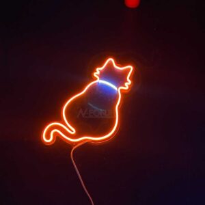 لافتة نيون مضيئة، مصنوعة بمزيج من النيون البرتقالي والأبيض البارد، تكدر تختار إضاءة النيون اللي تفضلها، وتقدر تضيف ديمر حتى تتحكم بمستوى السطوع ويا أنماط الوميض، تتثبت على الحايط / أو تتعلك