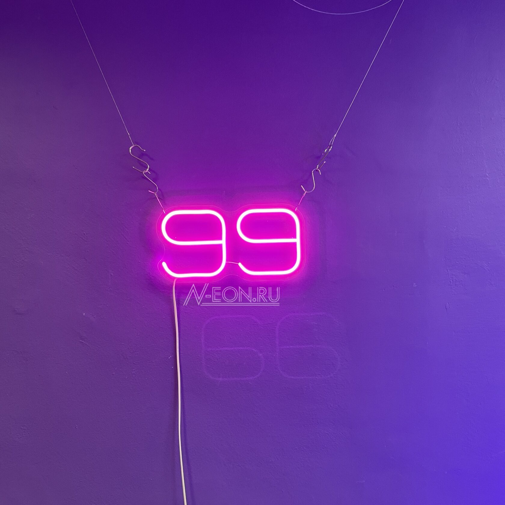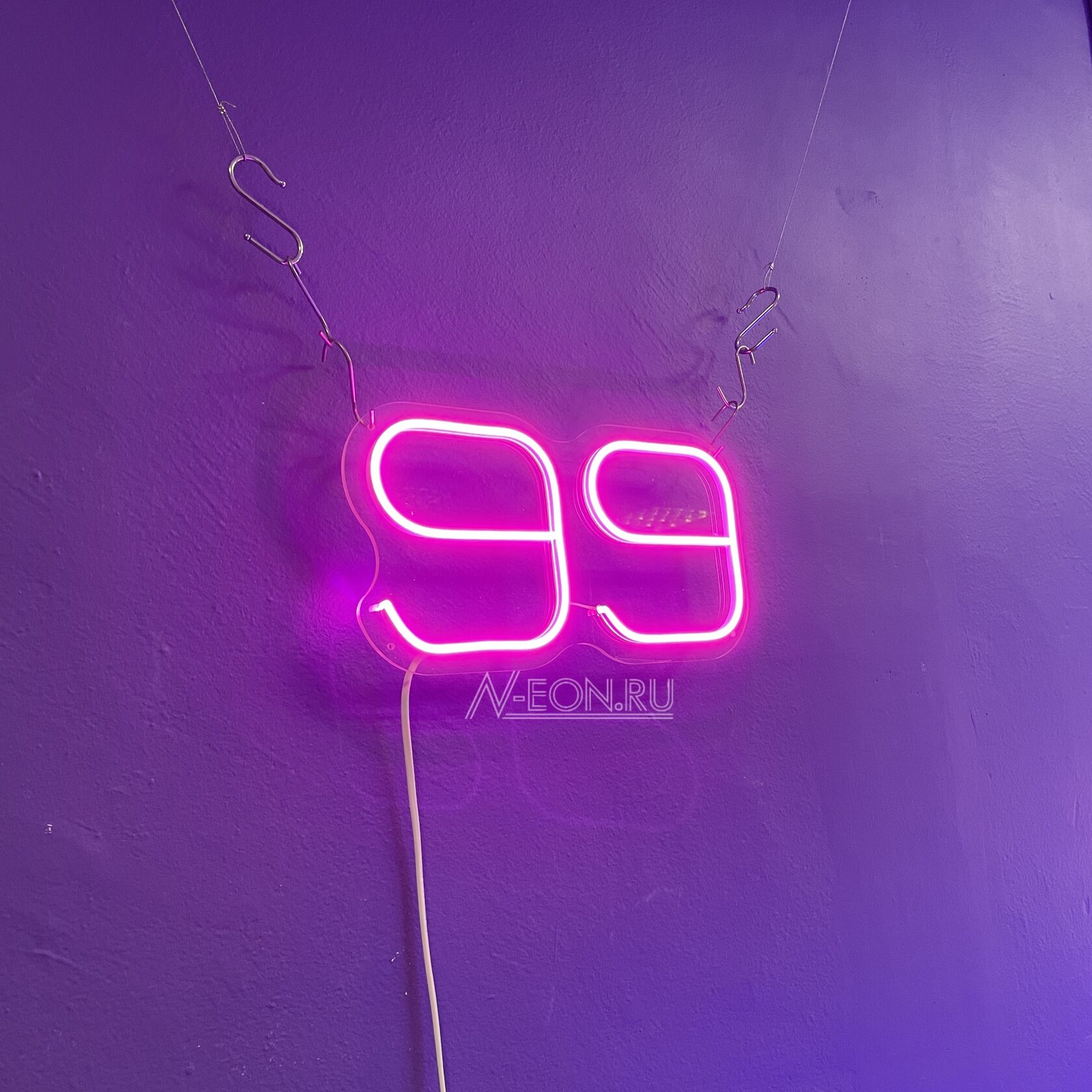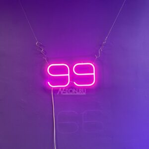 ???? لافتة نيون “الرقم 99” — رمز للنجاح، الخير والكمال. هذا اختيار مثالي لتزيين المحلات، العروض أو الديكورات الداخلية، وين الأضواء القوية مهمة.