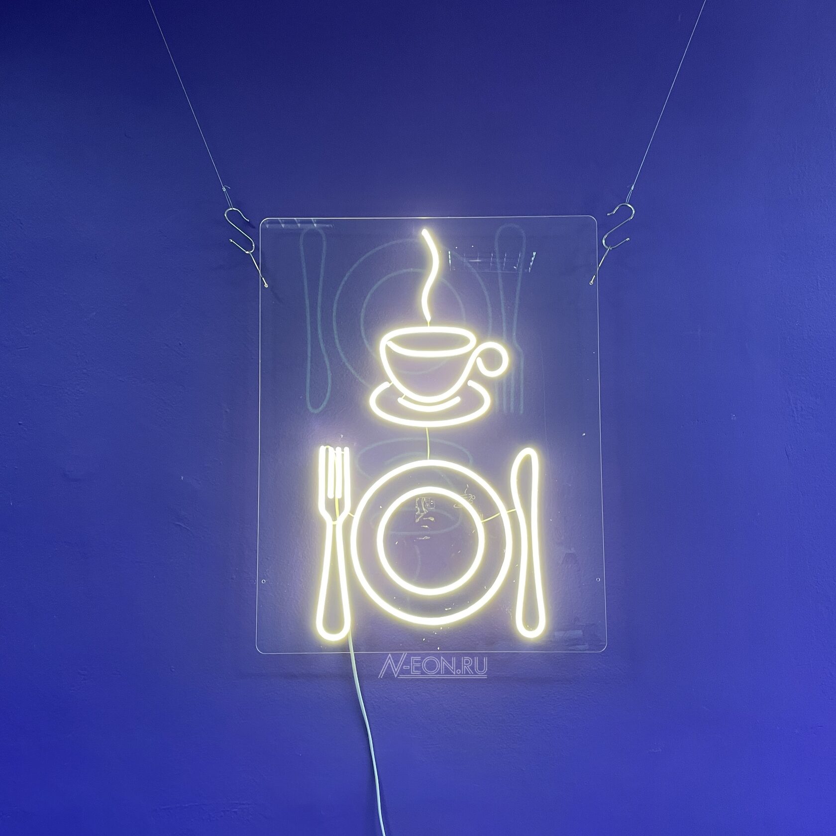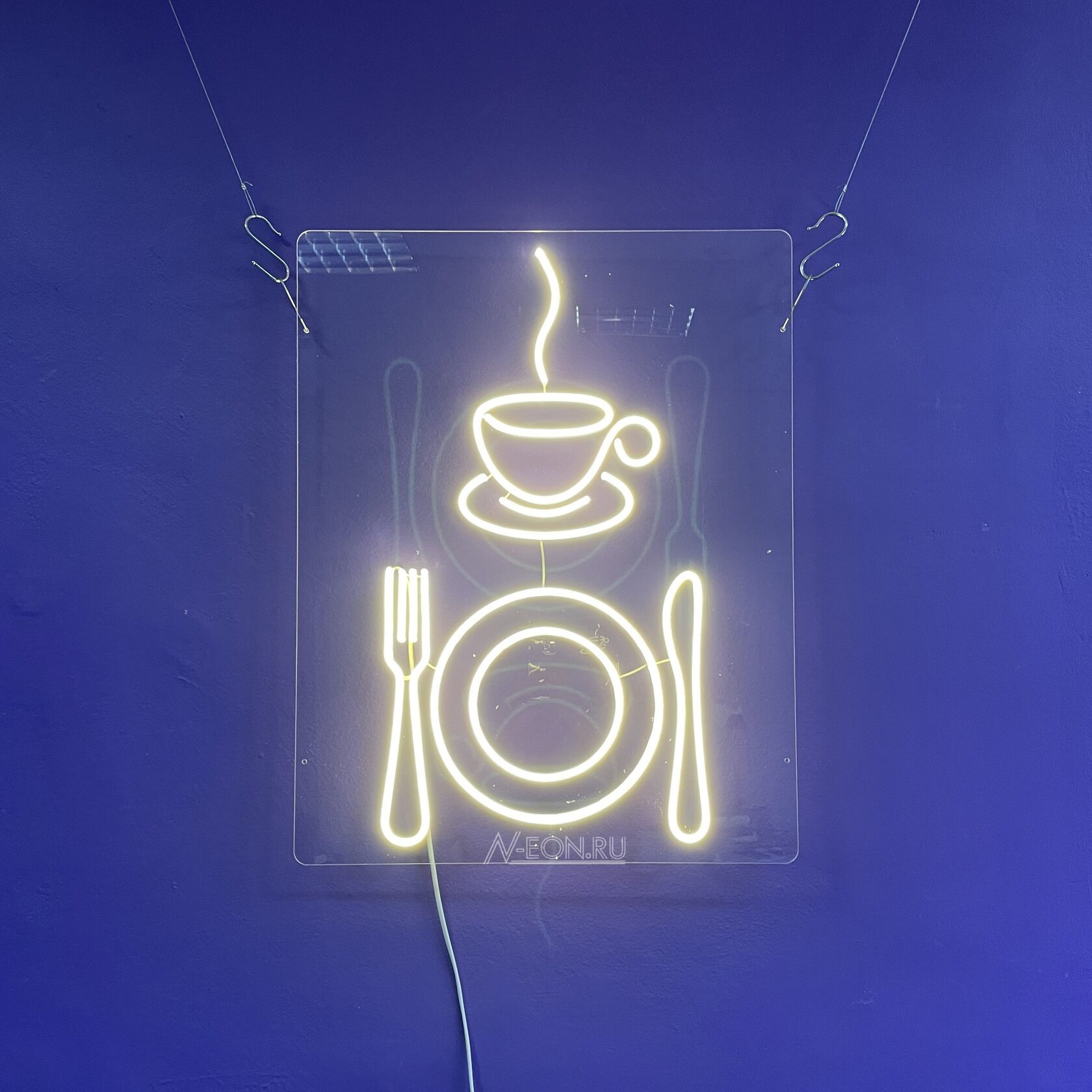 ????️ لافتة نيون “كوب وصحن” راح تبرز بشكل مثالي الأجواء الحلوة وكرم الضيافة بمقهى، مطعم أو كوفي شوب مالتك. اجذب انتباه الزبائن برمز أنيق وواضح! ????
