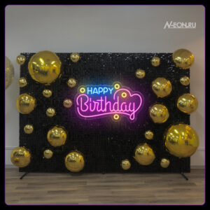 لافتة نيون “Happy Birthday” ???? – هاي ديكور يمشي ويا كل المناسبات. ضوئها القوي وتصميمها الحلو يخلونها الخيار الأمثل لتزيين الحفلات، مناطق التصوير (الـ photozones) والمناسبات. تمشي ويا أي عمر وأي ستايل.
