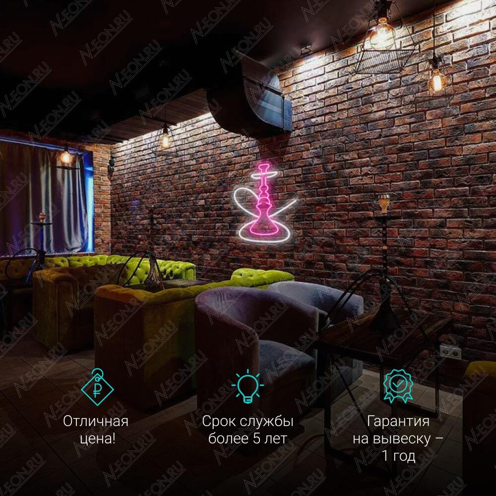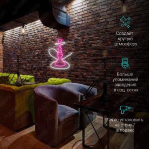 لافتة نيون رهيبة لبار الأركيلة، مكونة من نيون ليد مرن وردي وأبيض بارد، إذا تحتاج تكدر تثبتها على الحايط أو تعلقها