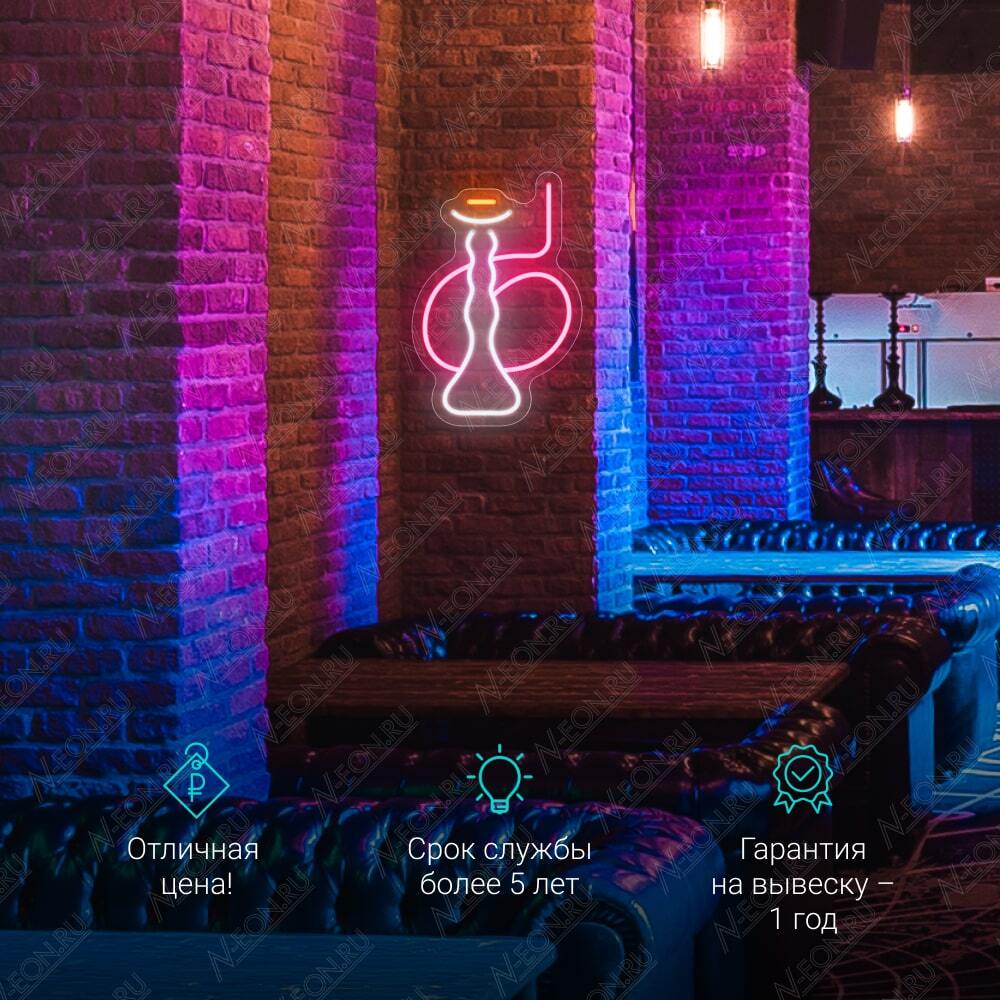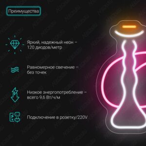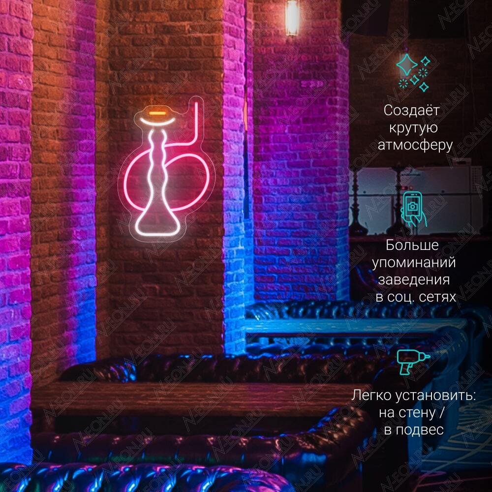 لافتة نيون صغيرة على شكل نركيلة، بيها إضاءة نيون LED مرنة لونها أبيض بارد، وردي وبرتقالي. تكدر تثبتها على الحايط أو تخليها معلقة حسب اللي تريده.