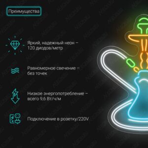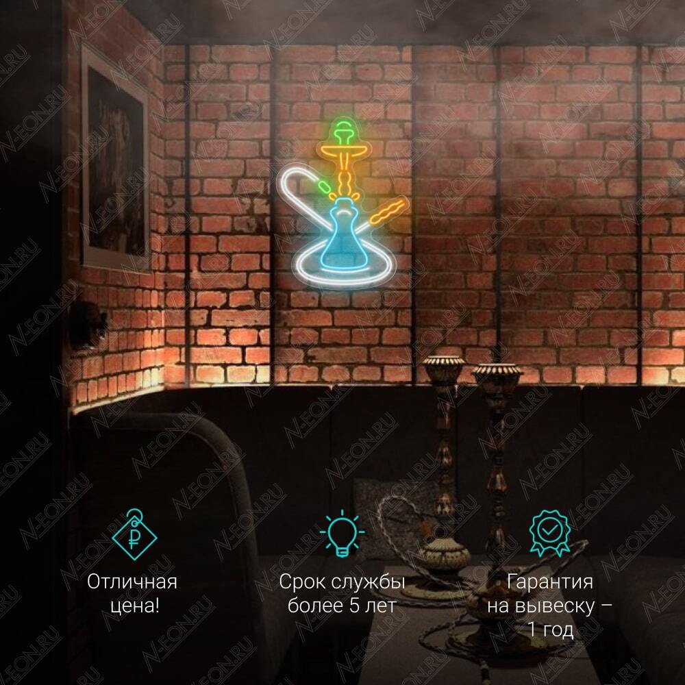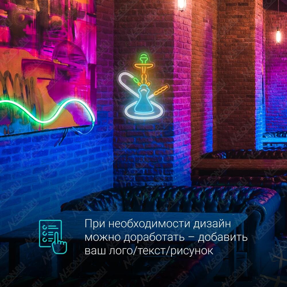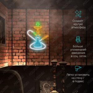 لافتة نيون جوّها حلو لبار قعدات أركيلة، بيها ألوان نيون لِد مرن أزرق، أبيض بارد، أخضر، وبرتقالي، وإذا تحتاج، نكدر نثبّتها عالجدار أو نعلكها تعليق