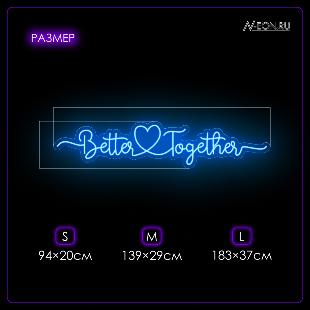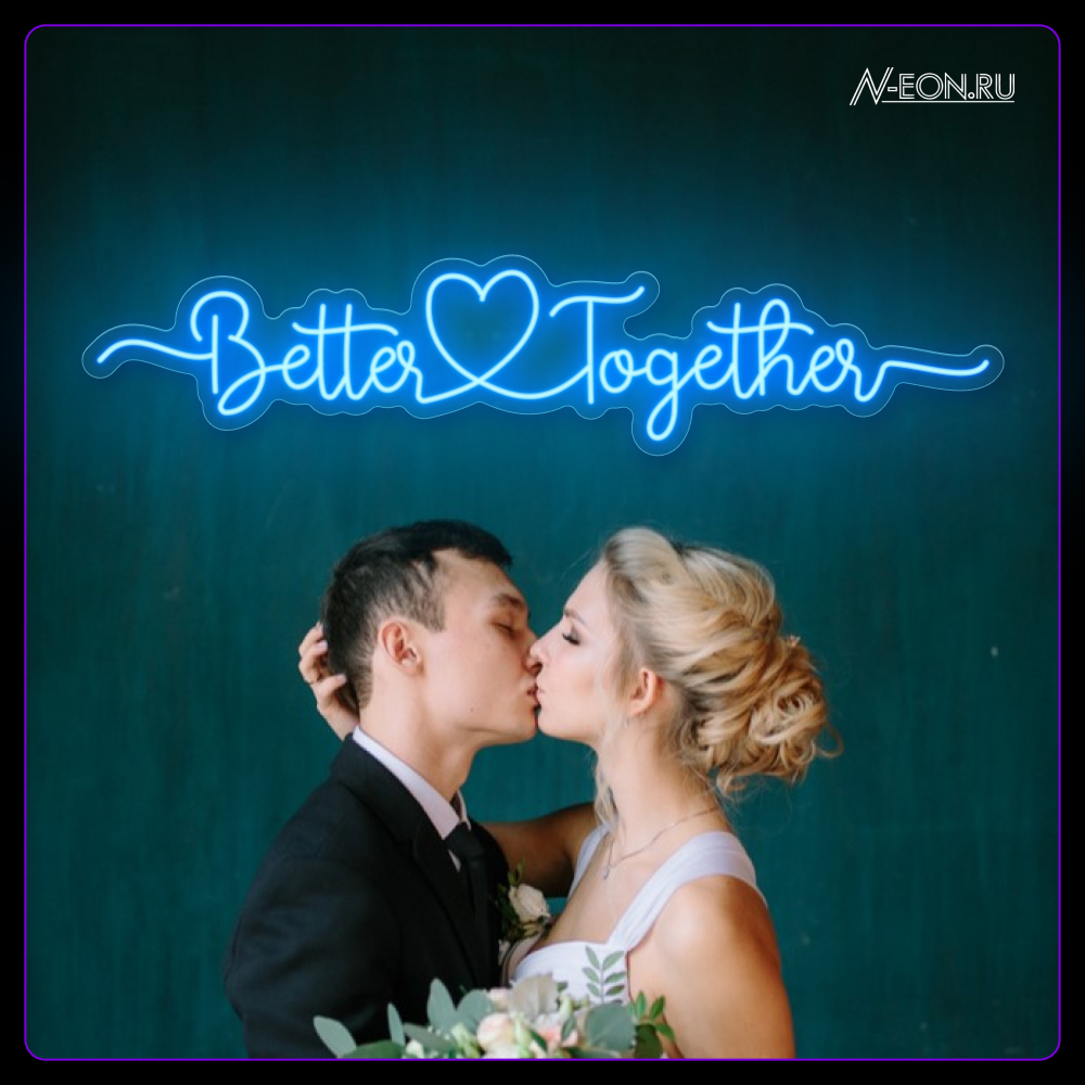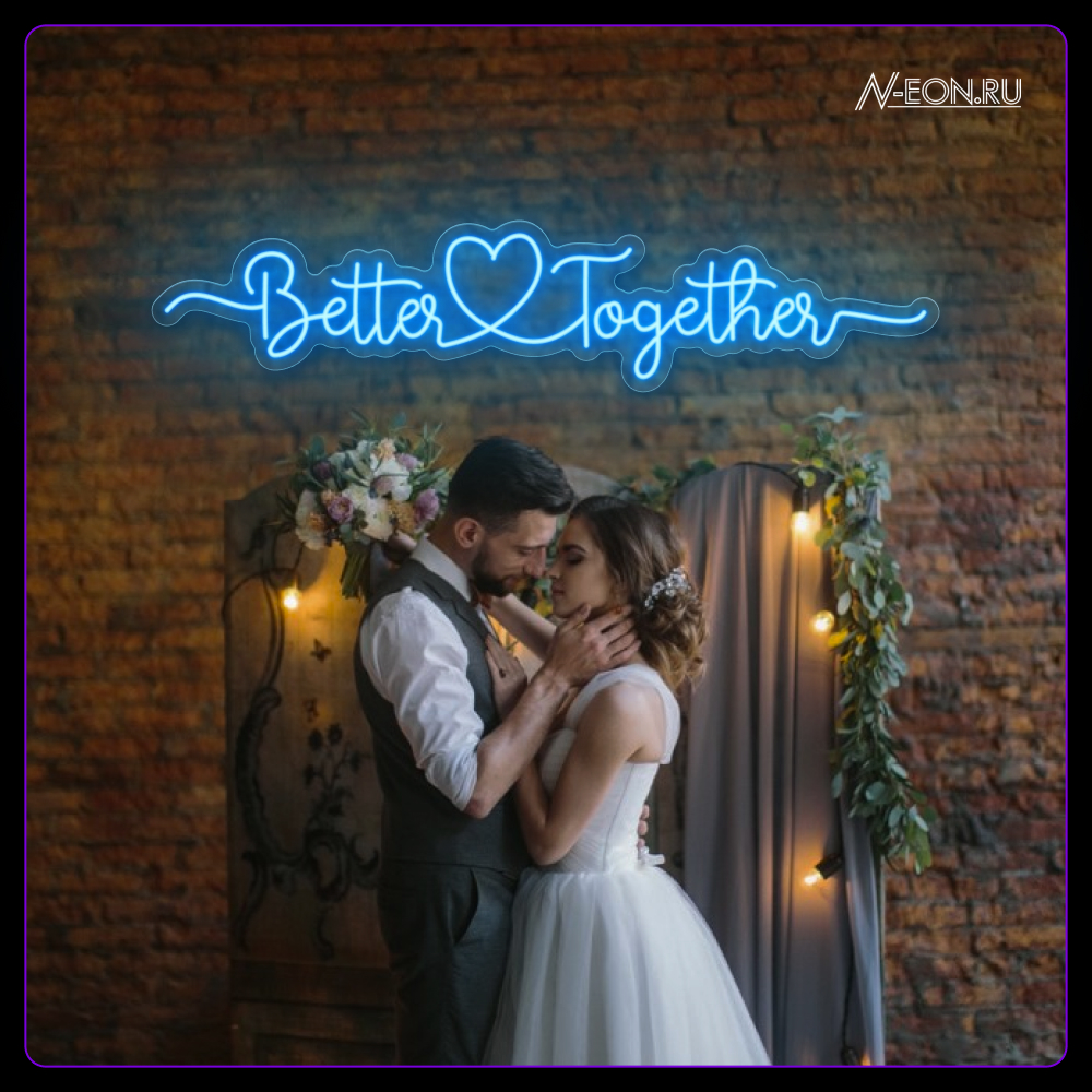لافتة نيون “Better Together” ويا گلُب — هاي القطعة المثالية للديكور بيوم عرسكم. إضائتها القوية وتصميمها الرومانسي يسوون جو مليان حُب وتآلف. تناسب أماكن التصوير (الفوتوزون)، قاعات الحفلات، وديكور البيت.
