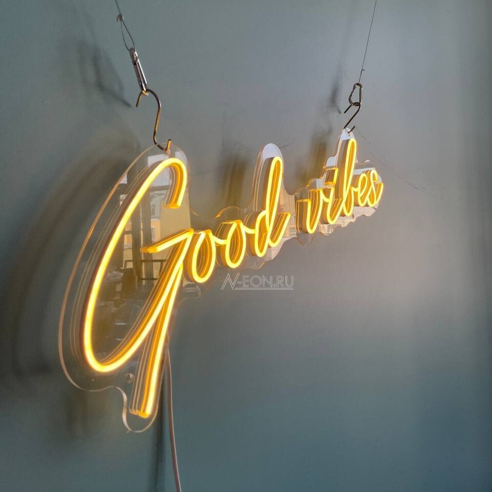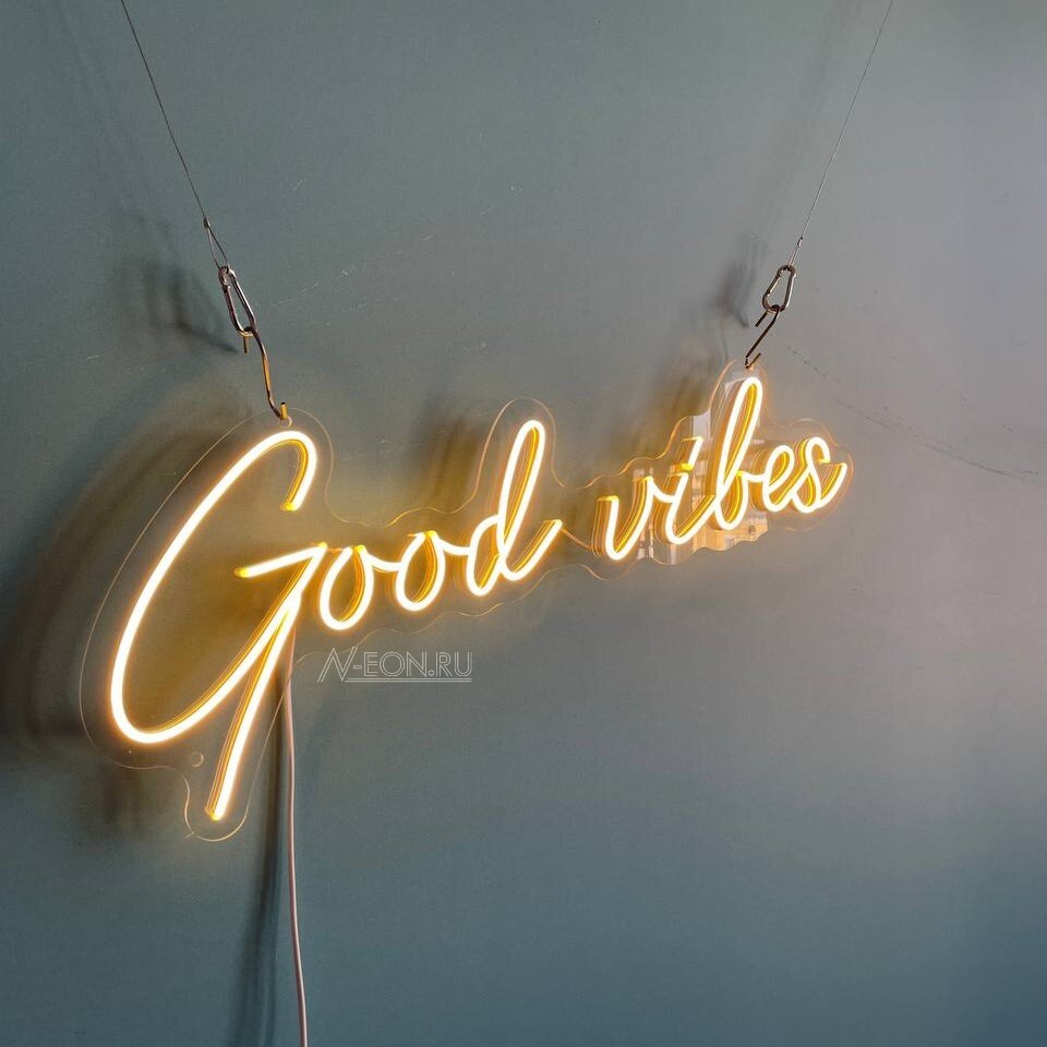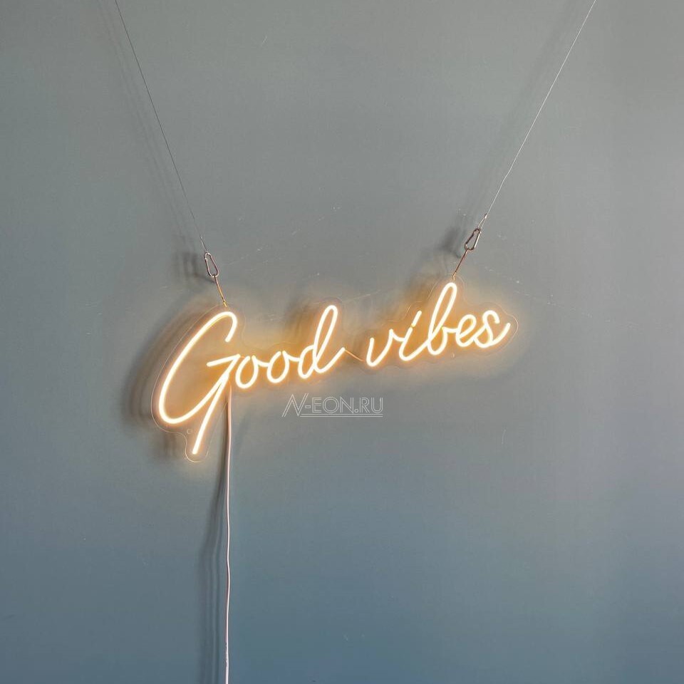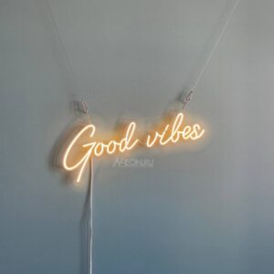 هاي لافتة النيون المكتوب عليها “Good Vibes” بسطر واحد، راح تصير لمسة مميزة لديكورك.