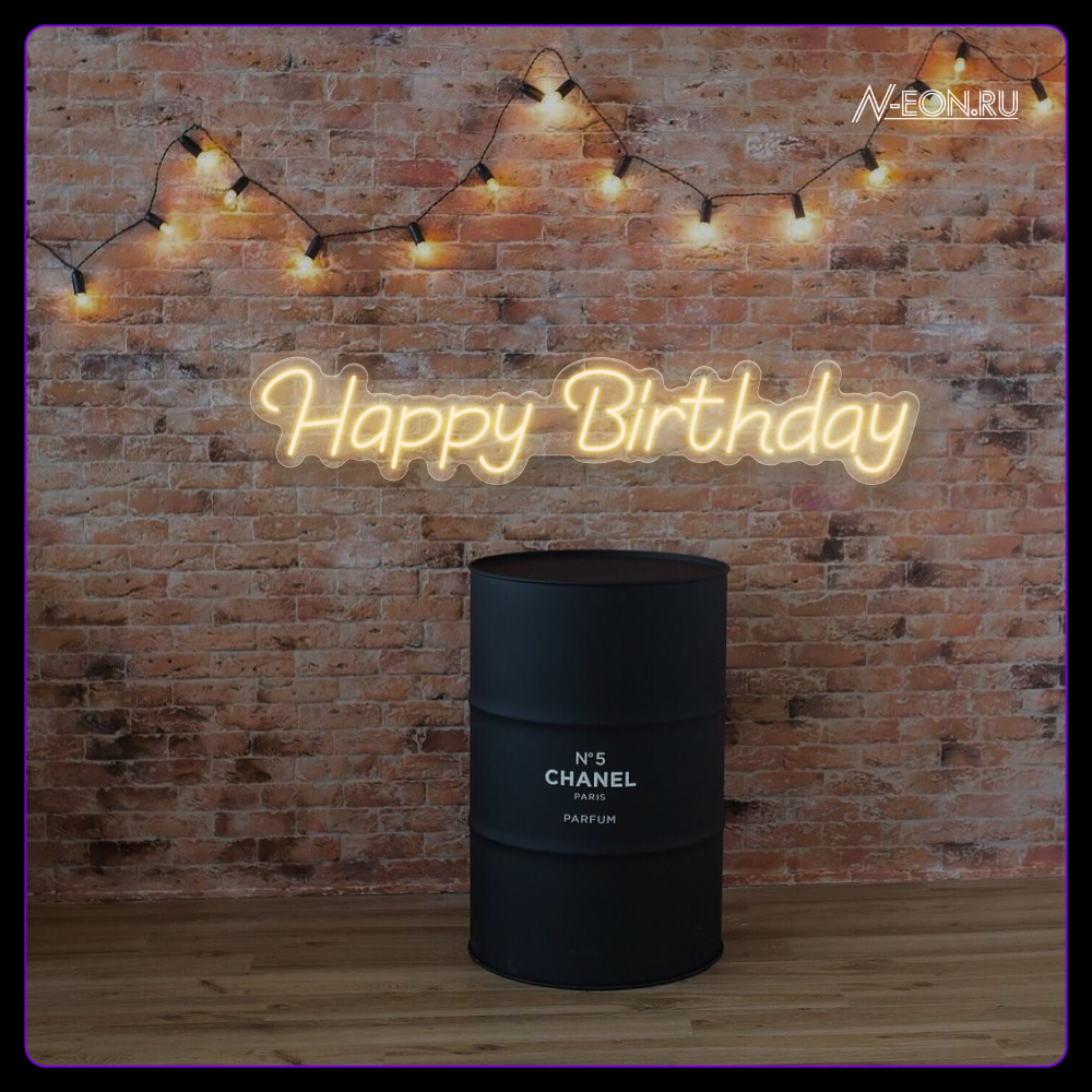 لافتة نيون “Happy Birthday” بسطر واحد ???? — هذا حل بسيط وحلو لتزيين الحفلة بستايل. تصميمها صغير يسمحلك تخلي اللافتة بأي مكان: على الحايط، فوگ الميز، أو بالفوتوزون. الإضاءة القوية راح تبرز أهمية المناسبة وتصنع جو احتفالي.