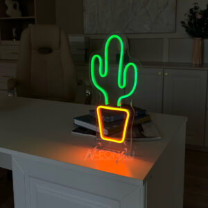 إضاءة نيون داخلية من نيون مرن، مصنوعة من نيون أخضر وبرتقالي. تكدر تختار لون الإضاءة اللي تريده، وتقدر تضيف وياها ديمر حتى تتحكم بشدة الإضاءة ويا وضعيات إضاءة متقطعة. تنكدر تثبتها على الحايط / على ستاند / أو تعلكها