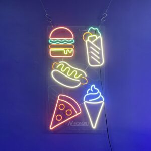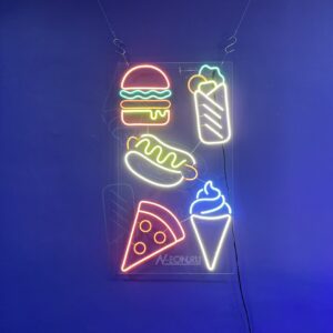 ???? لافتة نيون “أكل فاست فود” راح تصير لمسة مميزة لمحلات البرگر، الأكلات السريعة، ومراكز الأكل. اجذب الزباين بتصميم يشهّي يحجي عن نفسه! ????✨