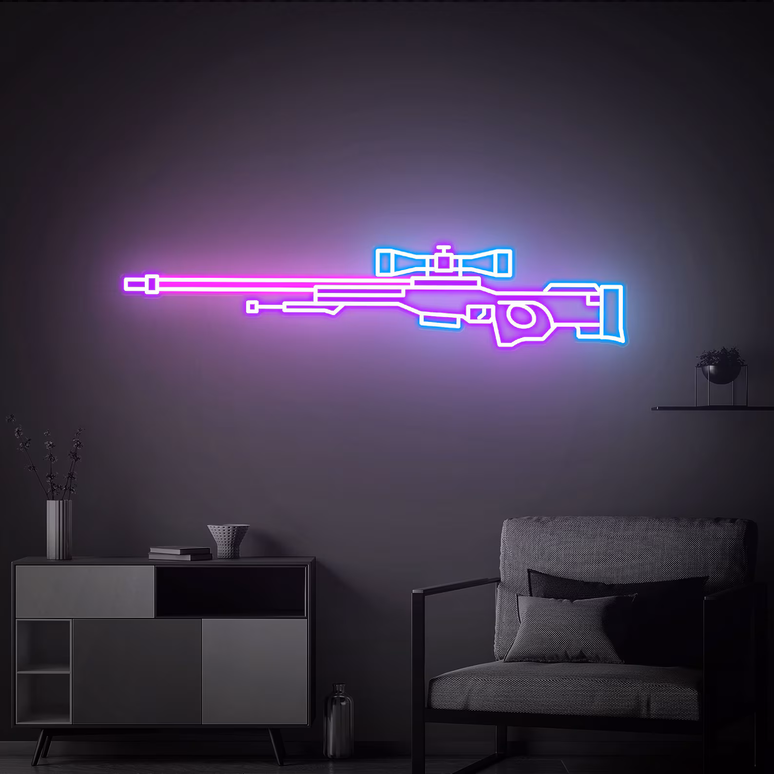 لوحة نيون بتصميم بندقية قنص بإضاءة LED ملونة لمحبي ألعاب التصويب.