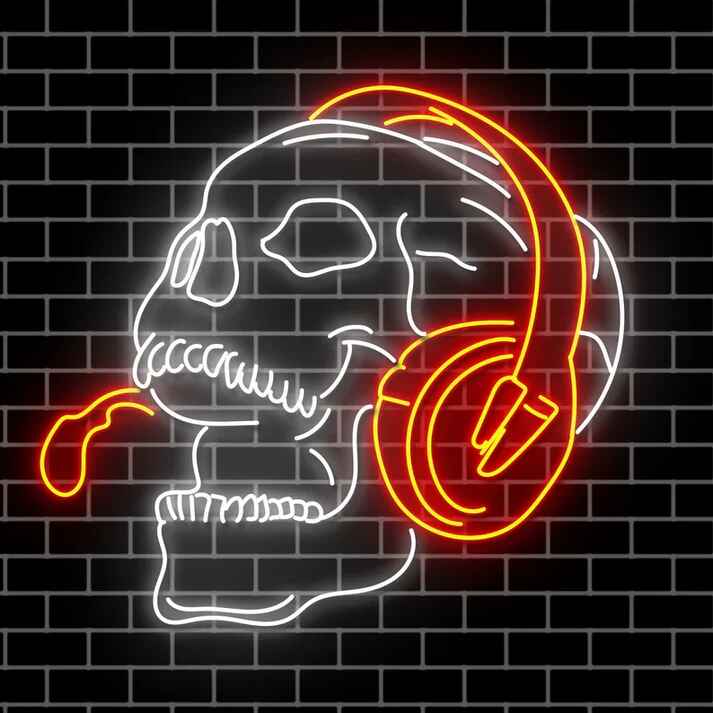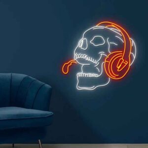 Be the first to review “لوحة نيون جمجمة سماعة”