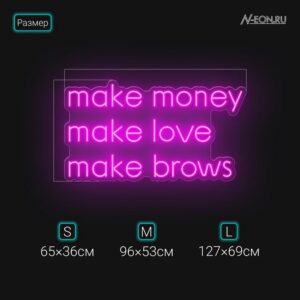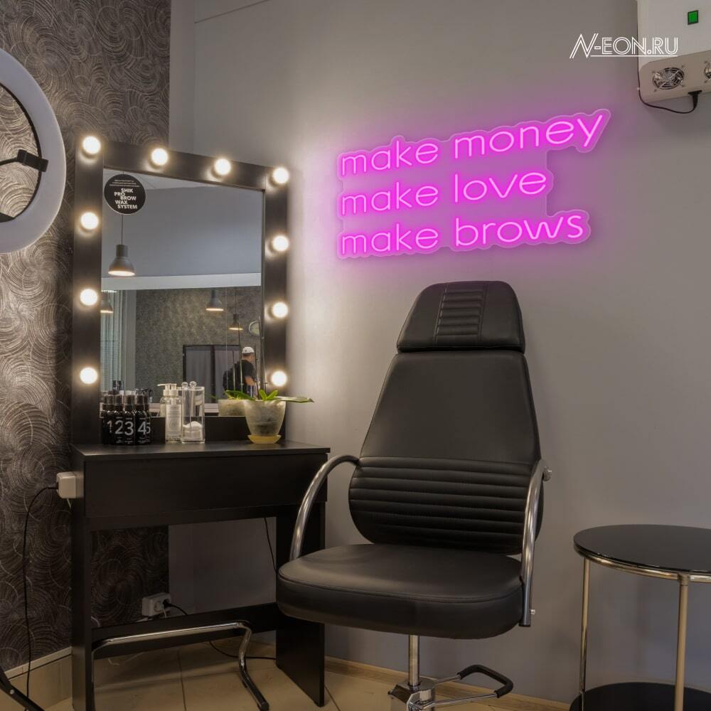 لوحة نيون لصالون تجميل – make money | make love | make brows