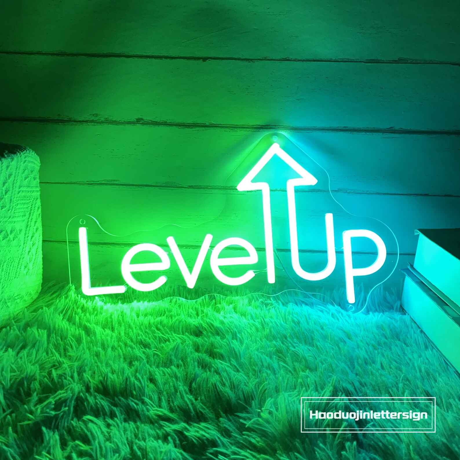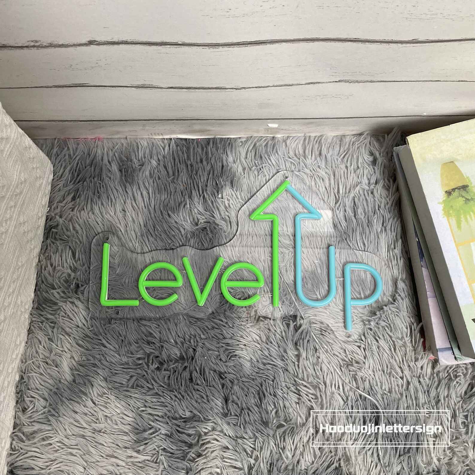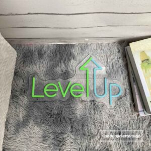 لوحة نيون ليف أب هي قطعة ديكور ضوئي أنيقة تعكس روح التطور والتحفيز. يظهر التصميم عبارة Level Up مع سهم متجه للأعلى بإضاءة نيون ناعمة، مما يمنح المكان طابعًا إيجابيًا ومُلهمًا.