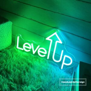 لوحة نيون بتصميم عبارة Level Up مع سهم صاعد بإضاءة LED ملهمة وعصرية.