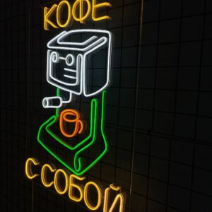 هاي اللافتة النيون اللي بيها صورة مكينة قهوة وكتابة “قهوة تو-غو” راح تبرز اهتمامك بالقهوة الزينة والخدمة، وتجذب زبائن جدد.
