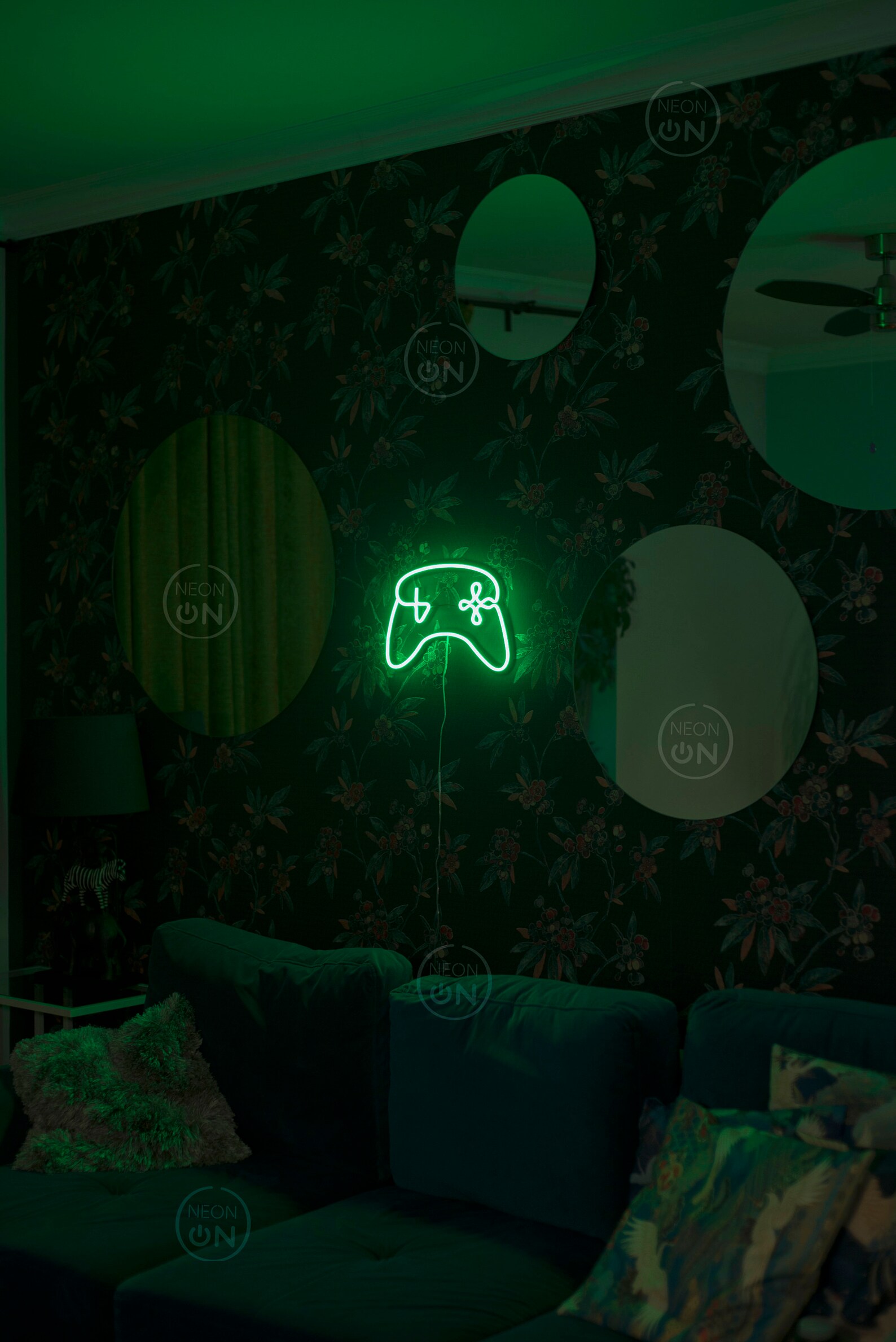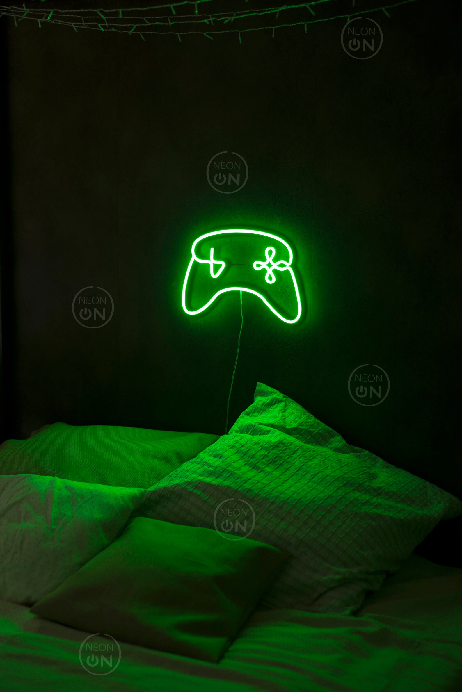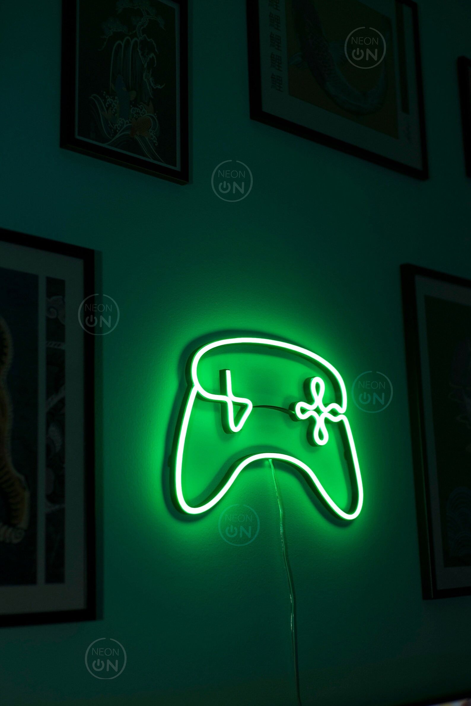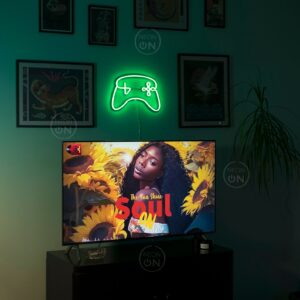 تصميم يد تحكم نيون بلون أخضر مشرق، يضيف لمسة عصرية رائعة لأي غرفة ألعاب.