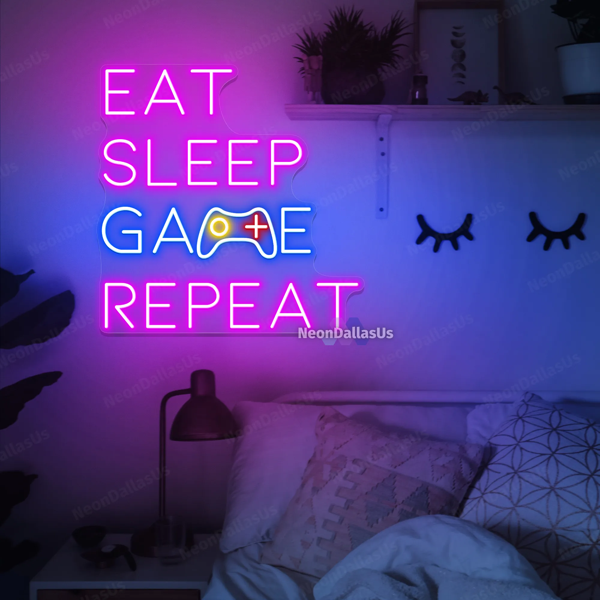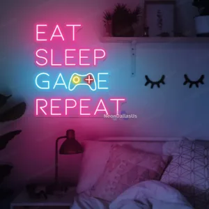 لوحة نيون “EAT SLEEP GAME REPEAT”
