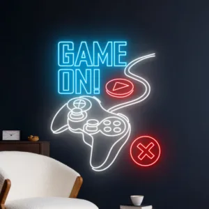 لوحة “GAME ON!” تأتي بتصميم احترافي يدمج بين عبارة التحفيز الكلاسيكية وعناصر تحكم الألعاب بشكل أنيق. ألوان متعددة وإضاءة LED تجعل منها تحفة فنية لأي غرفة ألعاب، ستوديو بث مباشر، أو مساحة ترفيه.