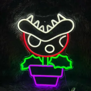 مصممة بإضاءة LED نيون نابضة بالحياة، تمثل هذه اللوحة الزهرة المفترسة التي تظهر فجأة من الأنابيب في ألعاب نينتندو الكلاسيكية.