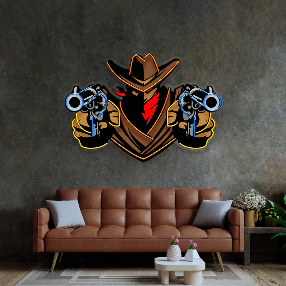 استعد لتزيين مساحتك بلوحة كاوبوي نيون الرائعة، التي تجمع بين الفن العصري وروح الغرب الأمريكي.