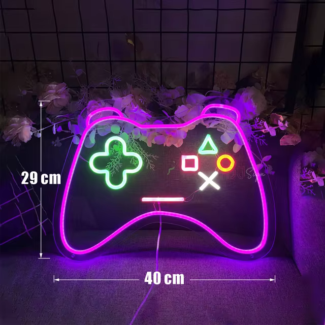 هذه اللوحة مستوحاة من شكل يد التحكم، وتأتي بإضاءة نيون LED ساحرة بالألوان الزاهية لتمنح غرفتك أجواء احترافية ومليئة بالحيوية.