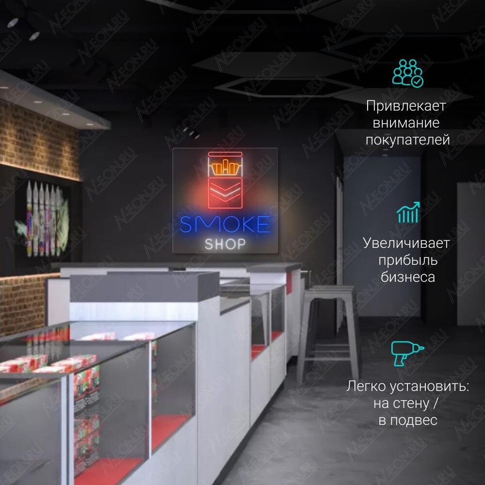 يافطة نيون إعلانية Smoke Shop ويا باكيت جكاير
