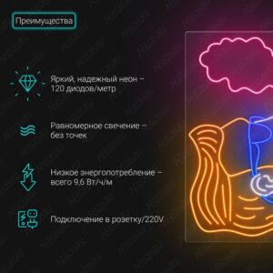 لافتة نيون تخطف العين، مصنوعة من نيون ليد مرن برتقالي، أبيض بارد، وردي وأزرق، وإذا تحتاجها، تكدر تثبتها عالحايط أو تعلّقها