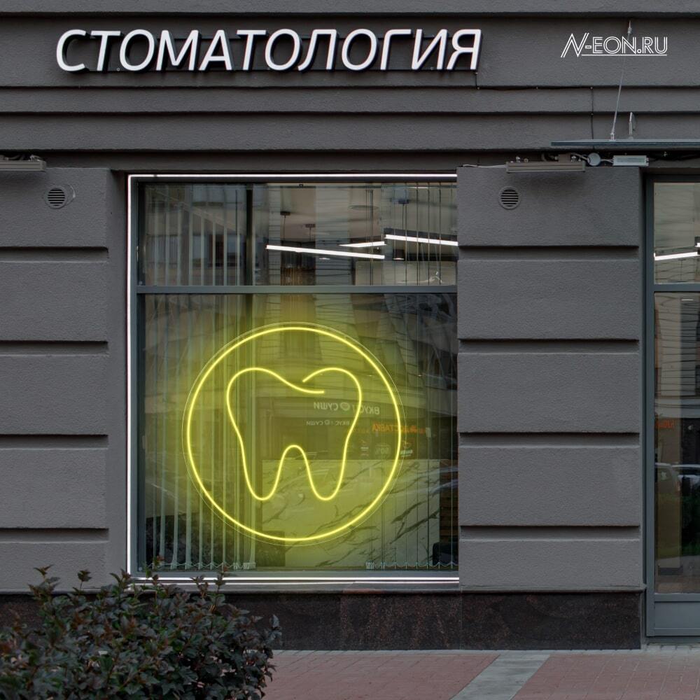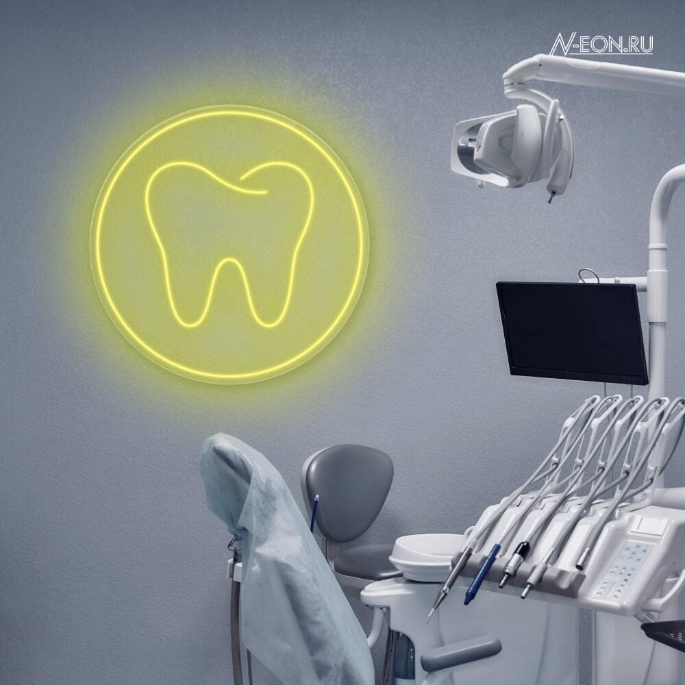 لافتة نيون واضحة لعيادة الأسنان مالتك