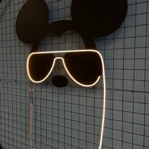 فرح طفلك بابتسامة ويا لافتة الماوس أبو نظارات النيون! التصميم الحلو والمرح يزين غرفة الطفل، ويخلق جو من الوناسة واللعب. هذا الإكسسوار راح يكون إضافة كلش حلوة لأي منطقة ألعاب!
