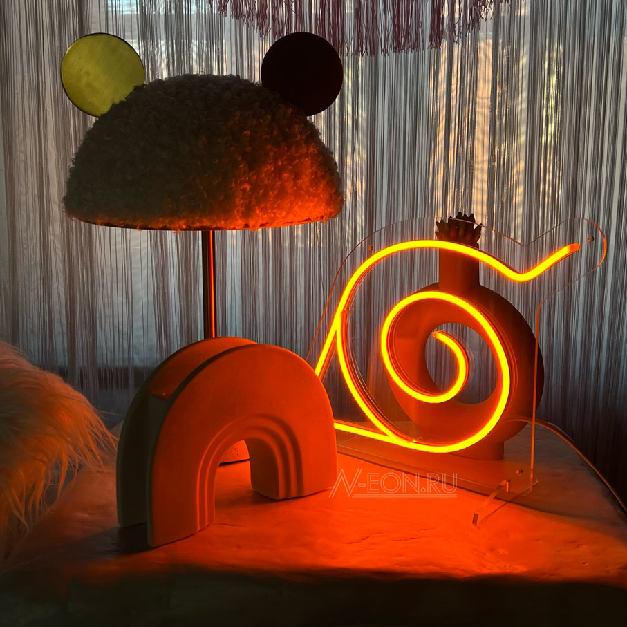لافتة نيون تخبل، مصنوعة من نيون برتقالي، تكدر تختار الإضاءة النيون اللي تعجبك، وتقدر تضيف ديمر حتى تتحكم بمستوى السطوع وبي أوضاع ومضات، تتثبت على الحايط / على ستاند / أو تتعلك