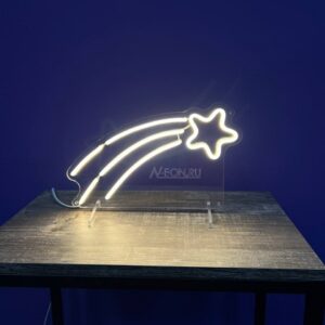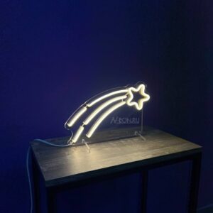 مصباح مميز للديكور المنزلي، اللي حيسوي لمسة حلوة ومميزة بديكور بيتك. يافطة نيون صغيرة بيها رسمة نجمة حتسوي جو سحري ومريح. نيون LED مرن نوعية ممتازة ينطي إضاءة ناعمة، مثالية للإستخدام كضو ليلي. اليافطة متوفرة – اطلبها هسة وضيف لمسة سحر لبيتك!