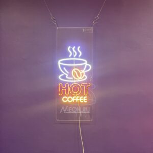???? لافتة النيون “Hot Coffee” – إشارة واضحة لكل محبي القهوة. أبرز الدفء والجو الحلو بمكانك، وادعي الزباين يستمتعون بالمشروب العطِر. مثالية للكافيهات والمقاهي! ????☕