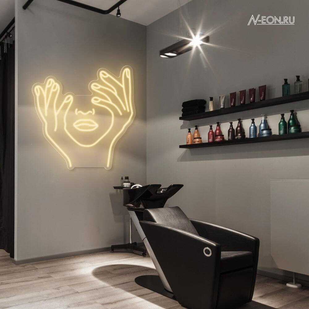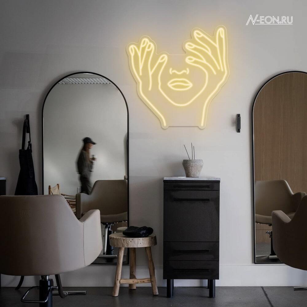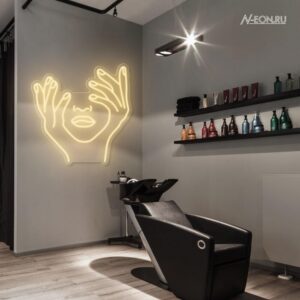 رمز الجمال والرقة. صورة وجه بنية ناعمة بتصميم نيون راح تنطي لصالونك لمسة أناقة ورومانسية. هيّ تسوي جو من الغموض وتجذب عيون الزباين