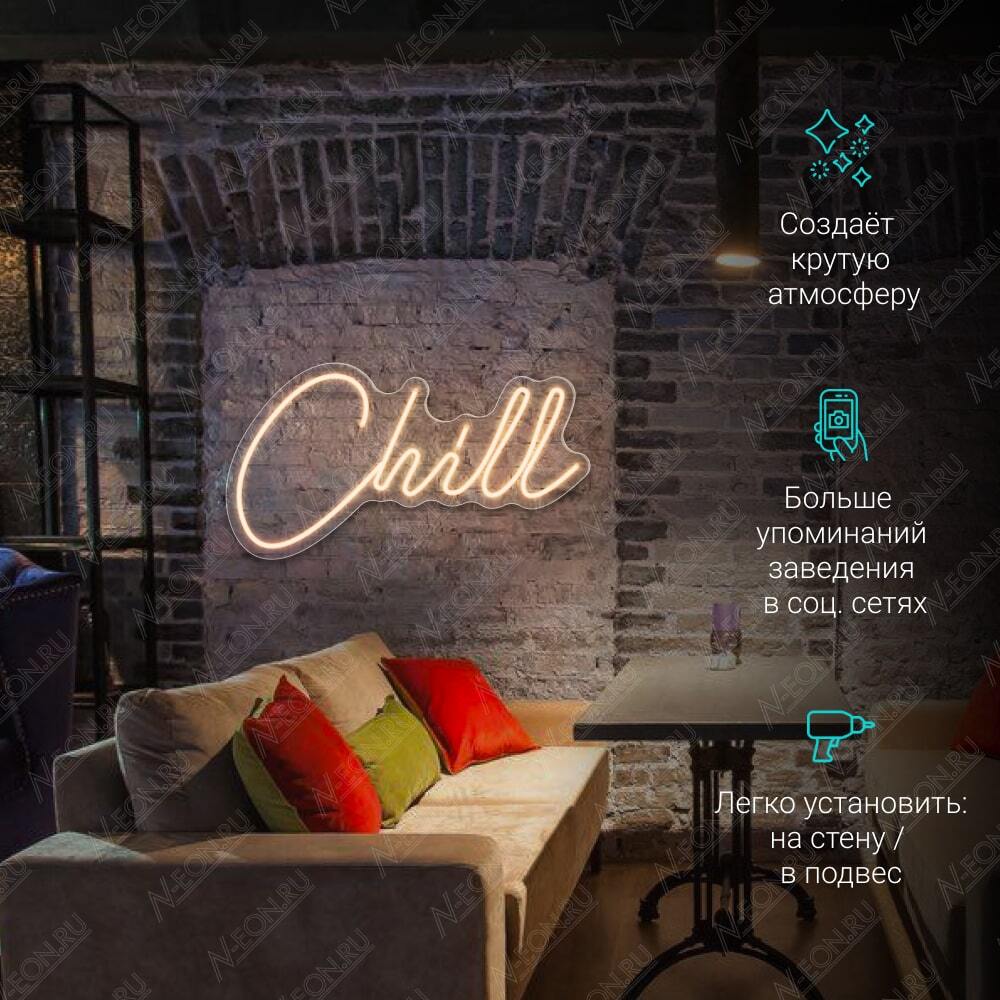 لافتة نيون جوّية لقعدتك، مسويها من نيون ليد مرن ولونه أبيض دافي، وإذا تحتاج تكدر تثبتها على الحايط أو تعلّقها