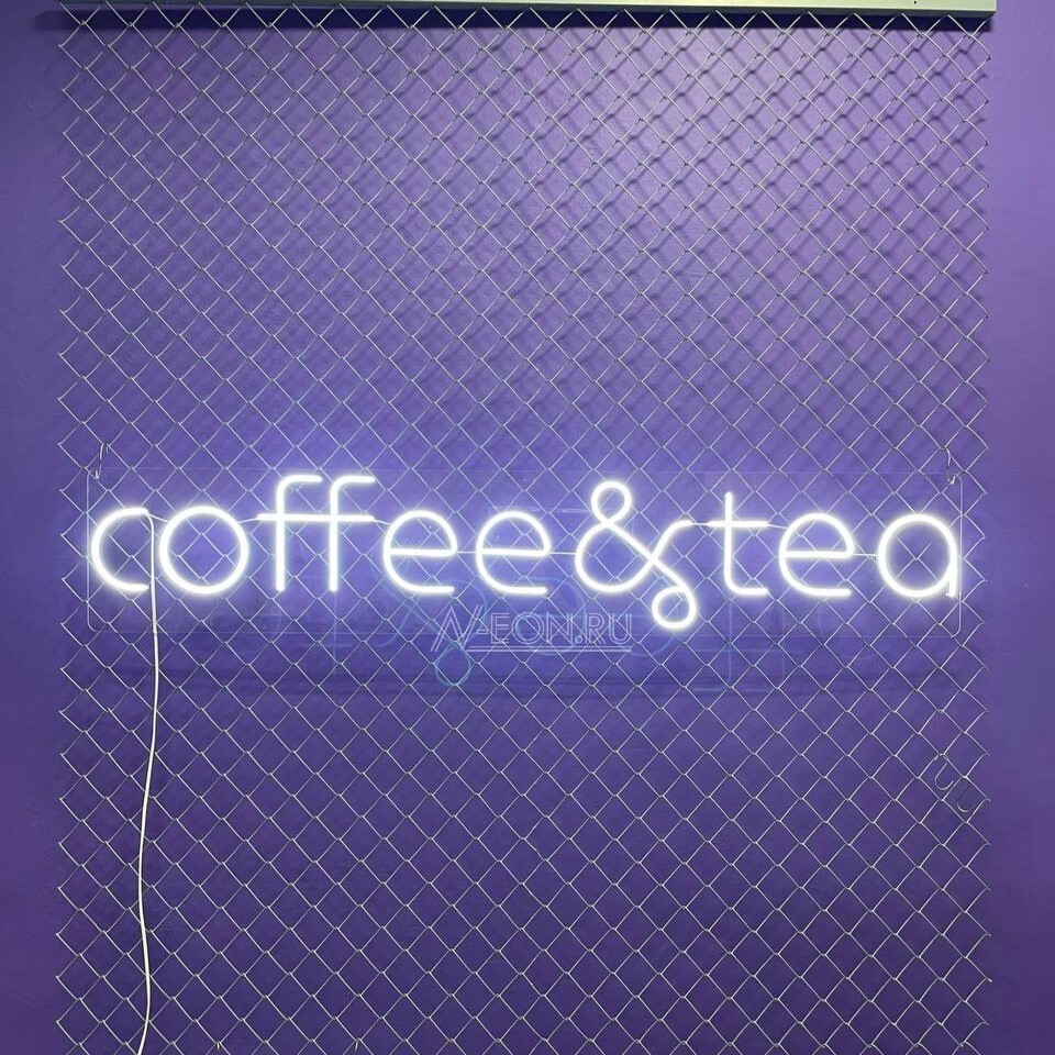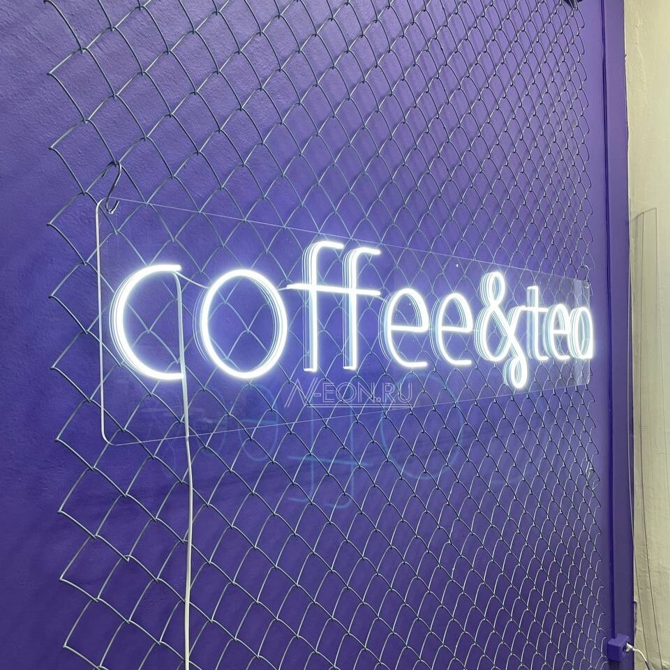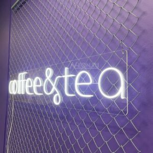 هاي اللافتة البسيطة والواضحة، المصنوعة بإضاءة النيون، راح توصل لزبائنك المحتملين بوضوح تنوع بضاعتكم وتلبي أذواق عشاق القهوة ومحبي الشاي.